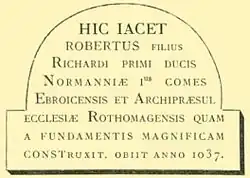 Sketch of the 18th-century plaque marking the tomb of Archbishop Robert the Dane in Saint-Père - He died 3 September 1309.