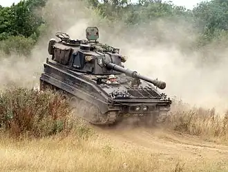 Main armament | 105 mm L13A1 gun, 40 rounds (including 6 rounds HESH) carried |