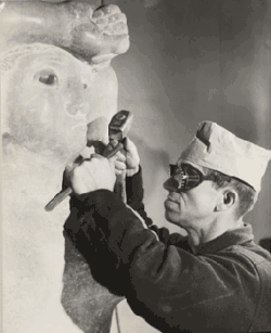 ![]() In studio, carving Wingless Victory in Chicago, Illinois, 1950. | |