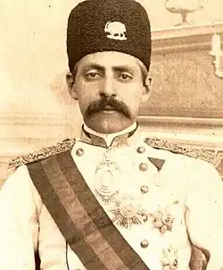 Abdol-Hossein Farman-Farma (Persian: عبدالحسین فرمانفرما; 1857 – November 1939) was a prominent Iranian prince of the Qajar dynasty and one of the most influential Iranian politicians in the Qajar era. Born in Tabriz to Prince Nosrat Dowleh Firouz in 1857, he was the 16th grandson of the Qajar crown prince Abbas Mirza. He fathered 26 sons and 13 daughters by 8 wives. He lived to see four sons of his first wife die within his lifetime.[2]