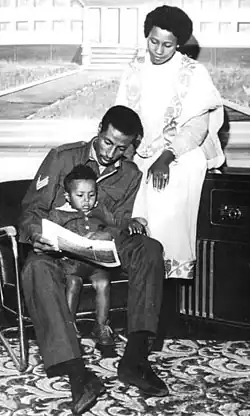 Abebe was 27 when he married 15-year-old Yewebdar Wolde-Giorgis on March 16, 1960.[17][note 1] Although the marriage was arranged by his mother, Abebe was happy[12] and they remained married for the rest of his life.[18]