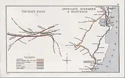 - Arbroath and Forfar Railway at the triangular junctions of Glasterlaw Junction, Friockheim Junction and Guthrie Junction