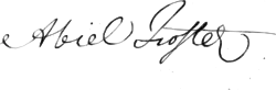 Abiel Foster's first wife Hanna died in 1768. His second wife, Mary Wise Rogers, was the granddaughter of John Rogers (Harvard); they had eight children.[6] Martha, who married Jeremiah Clough, Mary who married Henry Gerrish, Abiel Jr. who married Susanna Moore, Elizabeth who married Enoch Gerrish and Nancy who married John Greenough.[7]