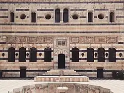 Ablaq (Arabic: أبلق; particolored; literally 'piebald'[1]) is an architectural technique involving alternating or fluctuating rows of light and dark stone.[2][3] It is an Arabic term[4] describing a technique associated with Islamic architecture in the Arab world.[5] It may have its origins in earlier Byzantine architecture in the region, where alternating layers of white stone and orange brick were used in construction.[3] The technique is used primarily for decorative effect.
