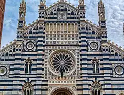 The technique of alternating light and dark stone constructions also appeared in Christian Europe around the mid 12th century, but it is uncertain whether this development occurred independently or was influenced by existing examples in Syria.[3] Notable examples include the 13th-century cathedrals of Monza, Siena, and Orvieto, as well as a palace in Genoa.[3]
