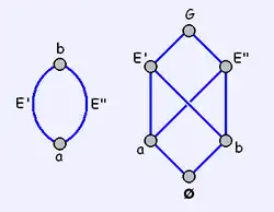 - {ø<a, ø<b, a<E', a<E", b<E', b<E", E'<G, E"<G}