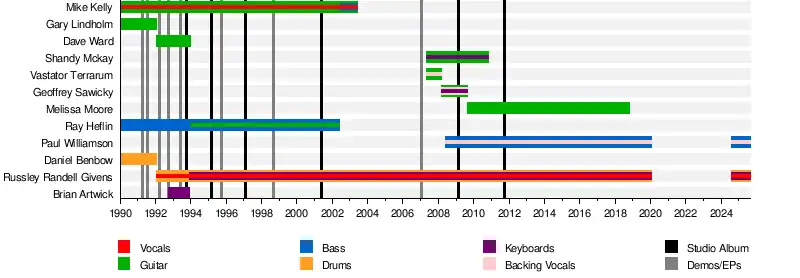 - Mezzadurus (Chris Gamble) – vocals, bass (1995–2002)