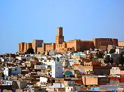 The first major settlement to capitulate was Tébessa, followed by Marmajanna, where he was given his famous donkey to ride. After the surrender of Sbiba, the rebels destroyed a Kutama army near Dougga and captured the city.[16] On 7 August 944, al-Aribus (ancient Laribus), the gate to the core of Fatimid Ifriqiya, surrendered in exchange for a letter of safety (aman) for its inhabitants; Fatimid officials and all adherents of Isma'ilism were explicitly excluded from it.[17] Al-Qa'im mobilized four armies in response: one to defend the old Aghlabid palace city of Raqqada, one under Khalil ibn Ishaq al-Tamimi to secure the former capital and major city of Ifriqiya, Kairouan, one under the eunuch Bushra to the area of Béja, and the main army under Maysur al-Fata, which was to encamp midway between al-Mahdiya and Kairouan, ready to assist either.[17]
