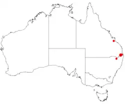 - ^ a b c d Pedley, Leslie (1990). "Acacia acrionastes (Leguminosae: Mimosoideae), a new species from south-eastern Queensland". Austrobaileya. 3 (2): 297–300. doi:10.5962/p.365745. Retrieved 11 January 2024.