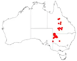 Boree grows in woodland on gibber plains near watercourses and in sandy soil in western New South Wales west of Enngonia and north of Wilcannia, and in southern central Queensland near Adavale.[3][4][5][6]