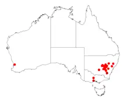 A. mollifolia is endemism to the central tablelands and central western slopes[2] of New South Wales with the bulk of the population found to the west of Peakhill, Boorowa and Bathurst areas to around Rankins Springs where it is often situated on sandstone ridges and on alluvial plains a part of dry sclerophyll forest or woodland communities[1] dominated by species of Eucalyptus and Callitris.[2]