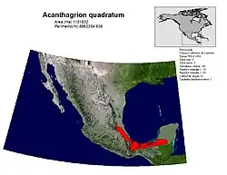 Acanthagrion quadratum is found in ponds with abundant vegetation, slow creeks and open marshes; also in marshy areas under the vegetation cover. It is distributed from the southern United States to Costa Rica. In Mexico, it has been recorded in the states of Campeche, Chiapas, Coahuila, Hidalgo, Nuevo León, Oaxaca, Puebla, Querétaro, Quintana Roo, San Luis Potosí, Tabasco, Tamaulipas, Veracruz and Yucatán. It is an abundant species.