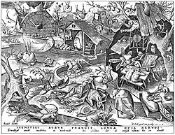 In Ancient Greece, acedia originally meant indifference or carelessness along the lines of its etymological meaning of lack of care. Thus, Homer in the Iliad uses it to both mean soldiers heedless of a comrade (τῶν δ᾽ ἄλλων οὔ τίς εὑ ἀκήδεσεν, "and none of the other [soldiers] was heedless of him.[3]") and the body of Hector lying unburied and dishonored in the camp of the Acheans (μή πω μ᾽ ἐς θρόνον ἵζε διοτρεφὲς ὄφρά κεν Ἕκτωρ κεῖται ἐνὶ κλισίῃσιν ἀκηδής. "Seat me not anywise upon a chair, O thou fostered of Zeus, so long as Hector lieth uncared-for amid the huts.[4]") Hesiod uses it in the sense of "indifferent" (ἀνίκητος καὶ ἀκηδὴς, "unconquered and untroubled"[5]). Peter Toohey, in his article Acedia in Late Classical Antiquity, argues that acedia, even in ancient times, was synonymous with depression.[6]