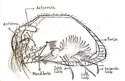 Female ostracods of this species have seven limbs with an antennal exopodite.[3]