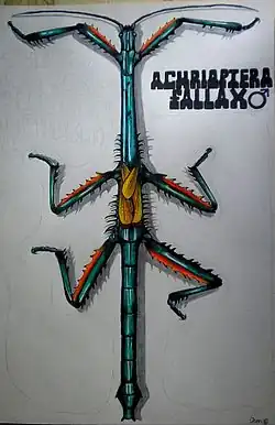 Achrioptera fallax is a stick insect species found in Madagascar. It has frequently been confused with A. manga, a species that only was scientifically described in 2019; for example, captive stock of "A. fallax" is generally A. manga.[1][2]