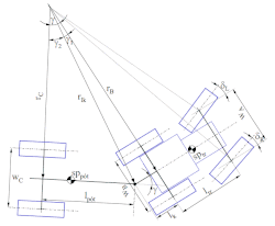 The Ackermann condition of vehicle train is fulfilled when both the vehicle wheel and the trailer wheel axes are pointing to the theoretical turning center (momentan centrum).[5]