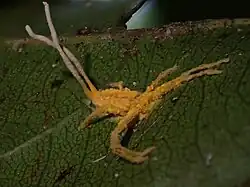| The sample that Acremonium isabellae was isolated from. It is a spider being consumed by a different fungi to Acremonium isabellae, under a leaf at Rowlands Creek in NSW. | |