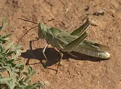 Acrolophitus hirtipes, known generally as the green fool grasshopper or plains point-head grasshopper, is a species of slant-faced grasshopper in the family Acrididae. It is found in Central America and North America.[1][2][3][4]