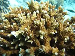 Acropora latistella is a species of Acropora polyp coral found in tropical reefs in the Indo-Pacific Ocean from depths ranging from 3 โ 20 meters.[1]