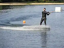Ada Ciganlija (Serbian Cyrillic: Ада Циганлија, pronounced [ˈǎːda tsiˈɡǎnlija]), colloquially shortened to Ada, is a river island that has artificially been turned into a peninsula, located in the Sava River's course through central Belgrade, Serbia. The name can also refer to the adjoining artificial Lake Sava and its beach. To take advantage of its central location, over the past few decades, it was turned into an immensely popular recreational zone, most notable for its beaches and sports facilities, which, during summer seasons, can have over 100,000 visitors daily[1] and up to 300,000 visitors over the weekend.[2][3] Owing to this popularity, Ada Ciganlija has been commonly nicknamed "More Beograda" ('Belgrade's Sea'), which was officially accepted as an advertising slogan in 2008, stylised as More BeogrADA.