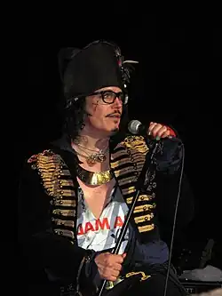 In an April 2010 interview for the NME, Ant announced he was also working on a new album, with the title Adam Ant Is the Blueblack Hussar in Marrying the Gunner's Daughter. This featured collaborations with former 3 Colours Red guitarist Chris McCormack, Ant's long-time songwriting partner Marco Pirroni, Morrissey's writing partner Boz Boorer and was also due to feature a member of Oasis (later identified as Andy Bell).[75] According to Ant, the album is a "live record that lends itself to performance" and will feature a "kind of concept. It's a very old-fashioned, old-school, step-by-step album". He also described the album as "very autobiographical, very personal."[76] In addition, Ant re-recorded a song in tribute to the late Sex Pistols manager Malcolm McLaren, who died earlier that month, and who also once managed Adam & The Ants. Named "Who's A Goofy Bunny Then?", the track was only previously available as a demo recorded in the early 1980s, but Ant stated he wanted to release a new version in tribute to the late punk manager. "Malcolm was a sort of mentor in my life", he said. "As close as you can get to a surrogate father". The song took its name from a term of endearment bestowed upon McLaren by Ant – referring to his "quite prominent teeth".[77]