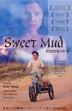 Sweet Mud (Hebrew: אדמה משוגעת, romanized: Adamah Mishuga'at, lit. 'Crazy Land') is a 2006 Israeli satirical drama film written and directed by Dror Shaul. The semi-autobiographical film was shot on the kibbutzim of Ruhama and Nir Eliyahu, and draws on Shaul's memories of growing up on a kibbutz with his mentally unstable and widowed mother.[2] This was the first film of the acting career of Daniel Kitsis.[3]