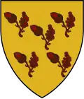 Like all the other Houses at Harvard, Adams possesses its own coat of arms: Adams' is derived from an 1838 seal ring of John Quincy Adams. James Phinney Baxter III, the House's first master, changed the background to gold to symbolize the Gold Coast, and added four additional oak sprigs to the original one to represent the five buildings of Adams House. Its official heraldic designation is: "Or, five sprigs of oak acorned in saltire, Gules." The House motto, "Alteri Seculo", is taken from Caecilius Statius, as quoted in Cicero's Tusculan Disputations: "He who plants trees labors for the benefit of future generations." ("Serit arbores quae alteri s[a]eculo prosint.")[4] (The alternate, late-Latin spelling, 'seculo' in lieu of the more normal 'saeculo' was noted at the House's founding in 1931. A letter to Master Baxter, now in the Adams House Archives, indicates that Adams himself had thus spelled the word in his signet, and therefore this spelling would be maintained for posterity in the House's official motto.)