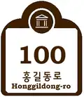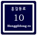 Korean streets have names typically ending in -daero (대로, 大路, Blvd.), -ro (로, 路, Rd.) or -gil (길, 街, St.) and they are distinguished by width: -daero (over 8 lanes), -ro (2~7 lanes) and -gil (others).