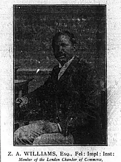 Z. A. Williams started his first business in 1870 at the age of 20, and in 1877 relocated his business to Lagos, where he dealt mainly in cotton goods. Soon after, Williams started a business in Idunshagbe, Lagos. He visited England for the first time in June 1880, where he made arrangements to establish a much larger business in Lagos. He returned in October 1880 and established a business on the Marina, in a building which, at the time, was called Manchester House.[3]