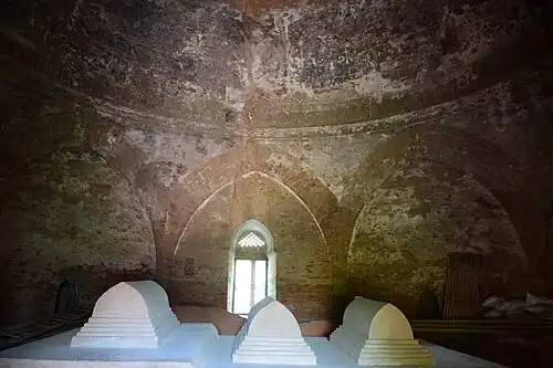 The capital of Bengal was shifted from Pandua to Gaur in 1450. The reasons for the shift are yet to be ascertained but a change in the course of a river has been speculated.[3] Pandua continued to host mints that produced silver taka for the duration of the sultanate period. It was an important administrative center. The mints were known as Shahr-i-Naw and Muzzafarabad.[6] Pandua's decline began with the conquest of Sher Shah Suri. Pandua became part of the wilderness. Earthquakes damaged its buildings during the 19th century. The high humidity and monsoon seasons of Bengal also caused much of its architecture to crumble. Nothing remains of the former royal palace except for traces in raised mounds.