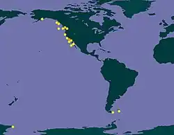 This species occurs in the Pacific Ocean from the Aleutians to California, USA; also off Tierra del Fuego, Argentina and in the Ross Sea, Antarctica.