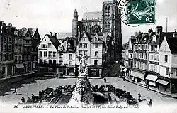 The old Haymarket Square (Place du Marché-au-Blé) in Courbet's home town of Abbeville was renamed Place de l'Amiral Courbet by the city authorities in July 1885, shortly after the news of Courbet's death reached France.[15] The town of Zemmouri in Algeria was renamed Courbet in 1886, and kept the name until 1962. An extravagant baroque statue of Courbet was erected in the middle of the square at the end of the nineteenth century. The statue was damaged in a devastating German bombing raid during the Second World War.