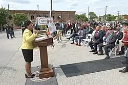 During the 2022 legislative session, Jones introduced a package of bills to eliminate state taxes on the sales of child care and medical items,[123] and another bill creating a 30-day gas tax holiday following a spike in gas prices as the result of the Russo-Ukrainian War. All of these bills passed unanimously and were signed into law by Governor Larry Hogan.[124][125] In May 2022, Jones declined to hold a special legislative session to prevent the state's gas tax from increasing 7 cents per gallon to adjust for inflation, and blamed big oil companies for "exploiting global uncertainty" to significantly increase gas prices. She also declined to extend the state's gas tax holiday, which she said would have "long-term consequences" on the state's infrastructure.[126]