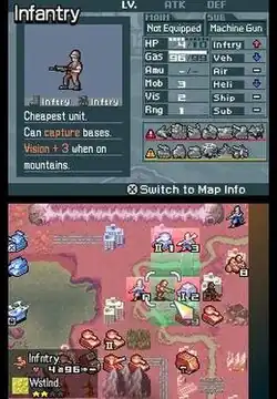 - ^ a b c d e f g h i j k Intelligent Systems (2008-01-21). Advance Wars: Days of Ruin (Nintendo DS). Nintendo.