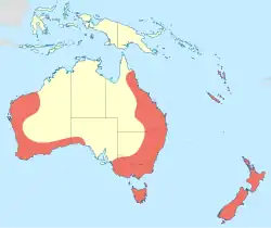 The blue-spotted hawker is widespread across Australia, New Zealand, Norfolk Island[8] and some Pacific Islands.[4] Its presence has not been verified in the Northern Territory.[8]