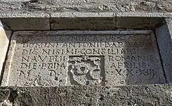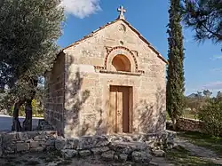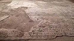 Aegina with the rest of Greece became dominated successively by the Macedonians (322–229 BC), the Achaeans (229–211 BC), Aetolians (211–210 BC), Attalus of Pergamum (210–133 BC) and the Romans (after 133 BC).[4] A sign at the Archaeological Museum of Aegina is reported to say that a Jewish community was established in Aegina "at the end of the second and during the 3rd century AD" by Jews fleeing the barbarian invasions of the time in Greece.[33] However, the first phases of those invasions began in the 4th century. The Romaniote Jewish community erected an elaborate synagogue in rectangle form with an apse on the eastern wall with a magnificent mosaic decorated with geometric motifs, still preserved in the courtyard of the Archaeological Museum of Aegina. The synagogue dates from the 4th century AD and was in use until the 7th century AD.[34] Local Christian tradition has it that a Christian community was established there in the 1st century. There are written records of participation by later bishops of Aegina, Gabriel and Thomas, in the Councils of Constantinople in 869 and 879. The see was at first a suffragan of the metropolitan see of Corinth, but was later given the rank of archdiocese.[35][36] No longer a residential bishopric, Aegina is today listed by the Catholic Church as a titular see.[37]