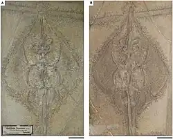 - ^ Türtscher, Julia; Jambura, Patrick L.; Spindler, Frederik; Kriwet, Jürgen (2025-01-23). "Insights into stem Batomorphii: A new holomorphic ray (Chondrichthyes, Elasmobranchii) from the upper Jurassic of Germany". PLOS One. 20 (1): e0310174. Bibcode:2025PLoSO..2010174T. doi:10.1371/journal.pone.0310174. ISSN 1932-6203. PMC 11756912. PMID 39847754.