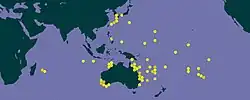 This species occurs in the Indian Ocean off Mauritius and Réunion; in the Pacific Ocean off the Philippines, Taiwan, Japan, Kiribati, the Marshall Islands, French Polynesia; in Oceania off Vanuatu; also off Australia.