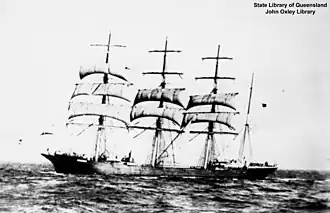 Afon Alaw was a four-masted sailing ship which served from 1891 until 1918. She had a sister ship, Afon Cefni. Afon Alaw was built by Alexander Stephen and Sons at their yard in Glasgow for Hughes & Co based at Menai Bridge in Anglesey. The vessel was named for a river in Anglesey. The vessel remained in British service until 1915, moving between three owners before being sold to a Norwegian company which renamed the vessel Storebror. Norway was neutral during World War I, however the German surface raider SMS Wolf did not want its position known and sank Storebror on 4 January 1918 to prevent the Norwegian ship from disclosing it.