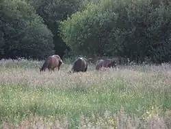 The authorities now consider the floodplain as an integral part of the overall river system. Under the Environment Agency's Floodplain Policy, it is deemed essential that it is kept free from development for flood defence reasons.[9] The Clun is liable to overflow its northern bank for about one and a half miles, between Cross Inn and the River Ely. This floodplain provides a wetland wildlife habitat.[19] In addition, horses are kept in the meadows, when the ground is not too waterlogged.