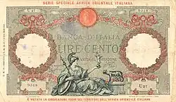 | | 100 Lire | Green/gray | LIRE CENTO – BANCA D'ITALIA – Dea Roma | LIRE CENTO – BANCA D'ITALIA – Aquila |