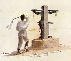 In the 18th century, slaves were mainly employed in the cattle ranches that were being founded.[4][5] In 1780, 5,102 slaves were registered in the state, about 29% of the total population, not including the freed ones.[1] From the first decade of the 19th century on, their presence more than doubled, as the charqueadas became the main economic activity of the province and demanded more labor.[4] According to Gitibá Faustino, "the gold exploration in Minas Gerais, in the 18th century, had fundamental importance in the development of the gaucho[note 1] charqueadas, which became the supplying source of meat for the auriferous region."[2]