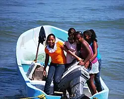 The Costa Chica ("small coast" in Spanish) extends from Acapulco to the town of Puerto Ángel in Oaxaca in Mexico's Pacific coast. The Costa Chica is not well known to travelers, with few attractions, especially where Afro-Mexicans live. Exceptions to this are the beaches of Marquelia and Punta Maldonado in Guerrero and the wildlife reserve in Chacahua, Oaxaca.[59] The area was very isolated from the rest of Mexico, which prompted runaway slaves to find refuge here. However, this has changed to a large extent with the building of Fed 200 which connects the area to Acapulco and other cities on the Pacific coast.[60] African identity and physical features are stronger here than elsewhere in Mexico as the slaves here did not intermarry to the extent that others did. Not only are black skin and African features more prominent, there are strong examples of African-based song, dance and other art forms.[61][62] Until recently, homes in the area were round mud and thatch huts, the construction of which can be traced back to what are now the Ghana and Ivory Coast.[59] Origin tales often center on slavery. Many relate to a shipwreck (often a slave ship) where the survivors settle here or that they are the descendants of slaves freed for fighting in the Mexican War of Independence.[15][63] The region has a distinct African-influenced dance called the Danza de los Diablos (Dance of the Devils) which is performed for Day of the Dead. They dance in the streets with wild costumes and masks accompanied by rhythmic music. It is considered to be a syncretism of Mexican Catholic tradition and West African ritual. Traditionally the dance is accompanied by a West African instrument called a bote, but it is dying out as the younger generations have not learned how to play it.[15][63]
