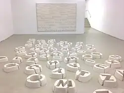 The work Matrice/sol consists of moulds of letters of the alphabet made from resin. Through the characters created from the negative space of the moulds, the work is intended to demonstrate that art is a question of interpretation and language, elements that change constantly.[19][20]