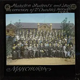 - ^ D. S. Crawford (June 2006). "Mukden Medical College (1911-1949): an outpost of Edinburgh medicine in northeast China. Part 2: 1918-1949: expansion, occupation, liberation and merger". The Journal of the Royal College of Physicians of Edinburgh. 36 (2): 179–184. PMID 17153154.