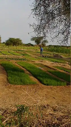 Agriculture is one of the dominant parts of Senegal's economy, even though Senegal lies within the drought-prone Sahel region. As only about 5% of the land is irrigated, Senegal continues to rely on rain-fed agriculture. Agriculture occupies about 75% of the workforce. Despite a relatively wide variety of agricultural production, most farmers produce for subsistence needs. Millet, rice, corn, and sorghum are the primary food crops grown in Senegal. Production is subject to drought and threats of pests such as locusts, birds, fruit flies, and white flies.[1] Moreover, the effects of climate change in Senegal are expected to severely harm the agricultural economy due to extreme weather such as drought, as well as increased temperatures.[2]