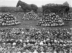 The total area of arable land was 2,537,900 hectares in 2022.[20] This remained almost the same in 2023.[21] There is in process of collection and updating a long time series arable statistics database JO1901 covering the years 1866 – 2020.[22] The series indicates a progression from small-scale subsistence agriculture towards larger scale and more specialised commercial production. It shows a maximum of 3.7 million hectares under arable cultivation in the early 1950s. This had declined to approximately 2.5 million hectares in 2020.