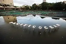 By 2000, the Binhi ng Kalayaan Monument had replaced the fountain, but the skating rink remained.[2] The monument was later moved to a barren area of Rizal Park in 2004 and was replaced by the Statue of the Sentinel of Freedom, a monument dedicated to Lapulapu.