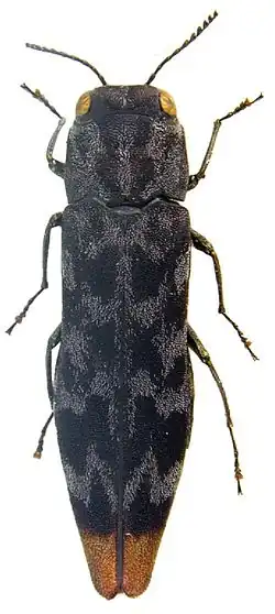 - ^ Bellamy, C. L. "Genus Agrilus Curtis 1825". The World of Jewel Beetles (Insecta: Coleoptera: Buprestidae). The Coleopterists Society. Archived from the original on 15 February 2016. Retrieved 25 April 2018.