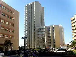 Póvoa de Varzim was one of the urban centres that adopted the tower concept, resulting in an urban chaos described as one of the worst urban landscapes in the country.[3] One of the earliest towers is the Edifício Norton de Matos (circa 54 m, 16 floors), built in 1974 between Rua Gomes de Amorim and Avenida Vasco da Gama. Most of the other towers followed loos. The latest is Forte de São Pedro, with the same height and number of floors. It was built in 2002, when the city council had already decided to stop the construction of high-rises.[4] Agro-Velho also has the tallest building in Póvoa de Varzim, the Edifício Nova Póvoa (ca. 90 m, 30 floors) built between 1974 - 1982. The tower has over 1,000 residents during the summer. Although it is not currently the tallest building, it is still the residential building with the most floors in Portugal.